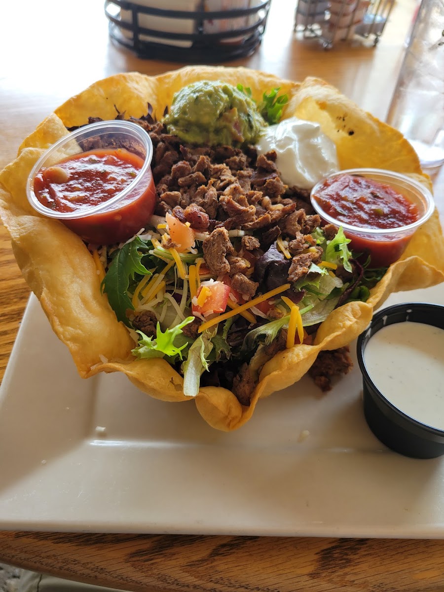Love their lunch offerings. I had a tostada salad. Forgot to take pic, but it's big, beautiful & you can eat the bowl. I've only had lunches here, but they serve breakfast & I think dinner. The prices are relatively low & even numbers. View of the golf course while eating is great.